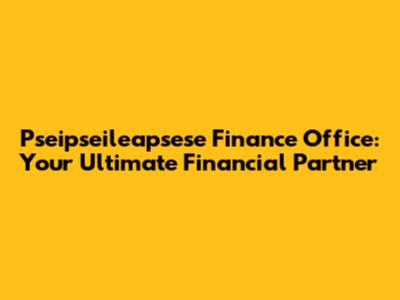 Hey guys, let's dive into the world of Pseipseileapsese Finance Office, a name that might sound a bit unique, but trust me, their financial services are anything but! In today's fast-paced world, managing your finances can feel like juggling flaming torches while riding a unicycle. It's complicated, stressful, and let's be honest, most of us would rather be doing just about anything else. That's where a reliable and expert finance office comes into play, and Pseipseileapsese Finance Office aims to be that guiding star in your financial galaxy. Whether you're an individual looking to get your personal budget in order, a small business owner trying to navigate the tricky waters of corporate finance, or a larger enterprise seeking strategic financial planning, this office is geared up to assist. They understand that every financial situation is unique, much like a fingerprint, and they pride themselves on offering tailored solutions rather than a one-size-fits-all approach. Imagine having a financial guru in your corner, someone who not only understands the numbers but also the dreams and aspirations behind them. That's the vibe Pseipseileapsese Finance Office is going for. They're not just about crunching numbers; they're about empowering you with the knowledge and tools to make smarter financial decisions. So, buckle up, because we're about to explore what makes this finance office a standout choice for anyone looking to achieve financial clarity and success. We'll be breaking down their services, their approach, and why they might just be the financial ally you never knew you needed. Get ready to demystify your finances and step into a brighter financial future, all with the help of the professionals at Pseipseileapsese Finance Office.