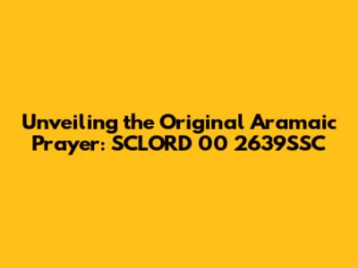 Unveiling The Original Aramaic Prayer: SCLORD 00 2639SSC