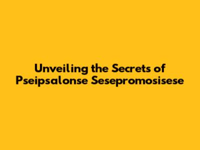 Unveiling The Secrets Of Pseipsalonse Sesepromosisese